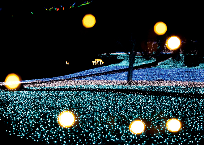東大寺では、しあわせ回廊なら瑠璃絵の期間中(毎年2月上旬~中旬)、夜間拝観が行われます。夜の静寂(しじま)の中で、国宝建造物が柔らかな灯りに照らし出される幻想的な風景を楽しみながら、お参りすることができます。春日大社では、境内にある数多くの石燈籠・釣燈籠に灯りが入ります。