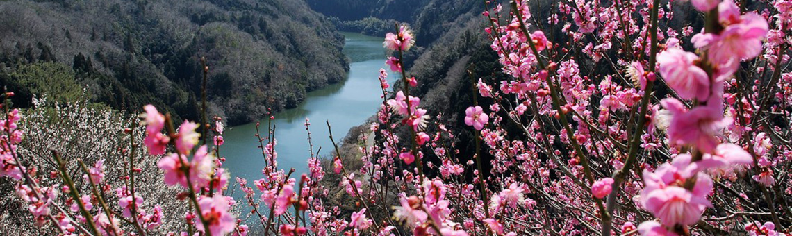 奈良県三大梅林の一つで、関西屈指の梅林。月ヶ瀬の湖岸から山腹にかけて約1万本の梅の花が咲き誇ります。