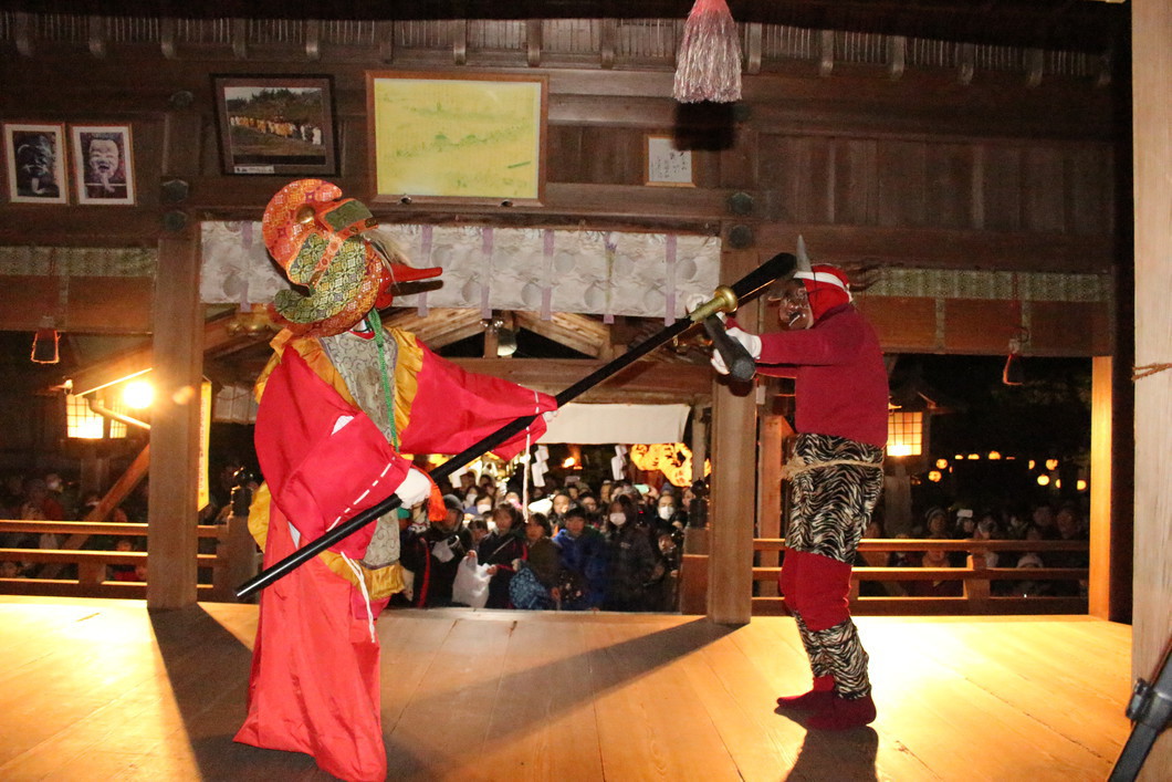 2026年2月3日(火) 16時~ 節分祭 式典 18j時~とんど点火 19時~ 鬼やらい式 赤鬼、青鬼、天狗の演技の後、参拝者に福豆の授与あり。 この行事・イベントは終了しました。
