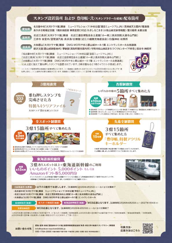 | 開催名 | 愛知・滋賀・奈良 秀長・秀吉 夢の軌跡スタンプラリー 第弐幕 https://sanken-toyotomi2026.jp |