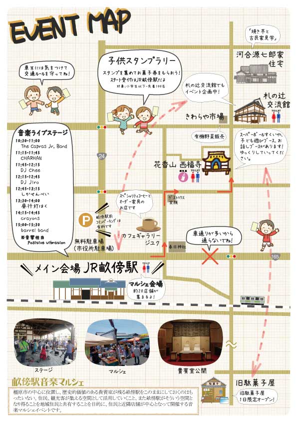 「畝傍駅音楽マルシェ」はそんなJR畝傍駅を、住民、観光客が集える空間として活用していくこと、またJR畝傍駅がそういう空間となり得ることを地域住民と共有することを目的に、住民と近隣店舗が中心となって開催される音楽マルシェイベントです。