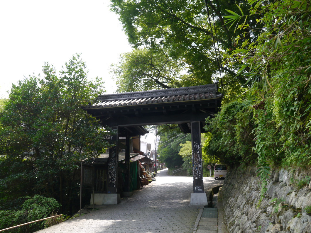 山上ヶ岳までの間に発心・修行・等覚・妙覚の四門があり、その最初の門である銅の鳥居(発心門)。黒門は金峯山寺の総門で、昔は公家大名といえども槍を伏せ、馬をおりて歩いたといわれる。