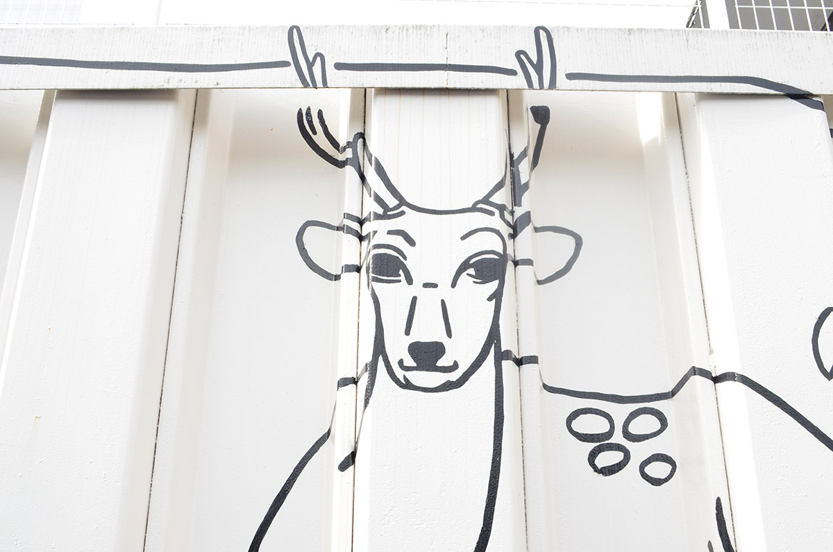 そんなわけで、奈良、正確には奈良公園一帯と言えば外せないのは鹿、である。道路標識、店の看板、お土産物、キャラクター、はては個人的なアートまで、実物だけでなく至る所に鹿の姿を見つけるのも、奈良ならでは。ぶらりと歩きながら、あっちこっちで「鹿狩り」をするのも楽しい(注:奈良の鹿は天然記念物です。そもそも神様の鹿です。決して本気で狩ってはいけません)。ちなみに道路標識をよく見ると鹿だけではなく、なんで間違えちゃったのか、トナカイが飛び出してくるらしい場所もあるので、間違い探しもお忘れなく。