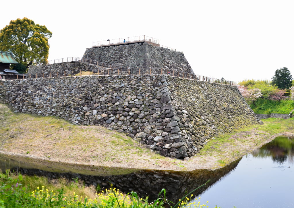秀長は郡山城に入城すると、大規模な修築に着手しました。その際、石材の不足が深刻で、石仏から五輪塔、墓石まで、様々な石が石垣などに転用され、中でも天守台石垣の北面にある「さかさ地蔵」はよく知られています。頭を下にして積まれていますが、顔が見えるように空間が残されています。石材を積んだ職人が地蔵像に申し訳なく感じたのか、顔がつぶれないように配慮したという話も伝わっています。