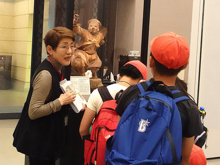 ボランティアガイドによる展示案内。文化財の大切さを学ぶ。ワークショップや体験型学習あり。