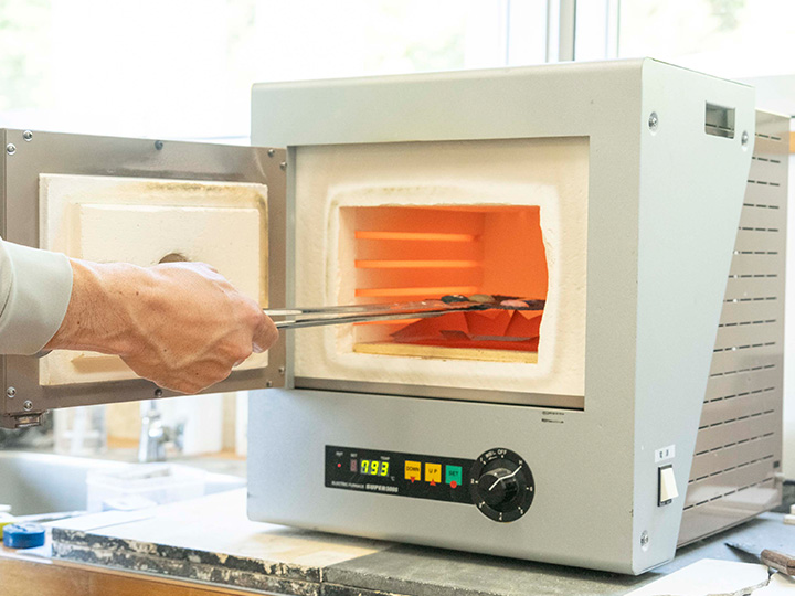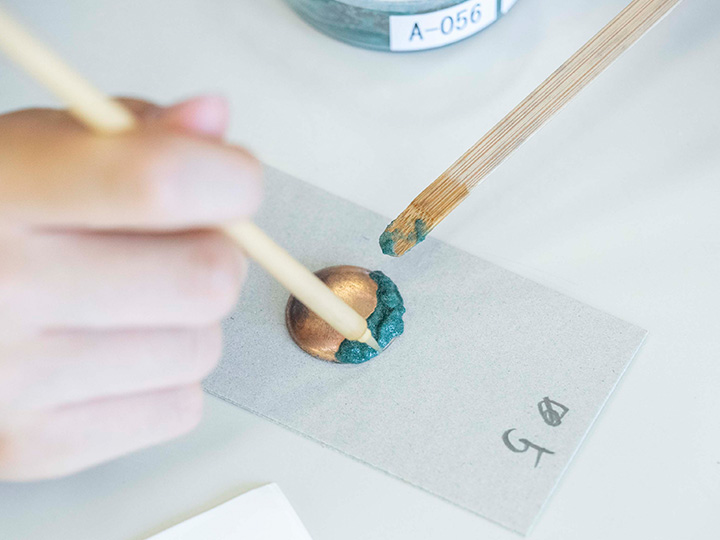 銅板に独特の釉薬(ゆうやく)をのせて焼成し、世界で一つのオリジナルアクセサリーを制作。