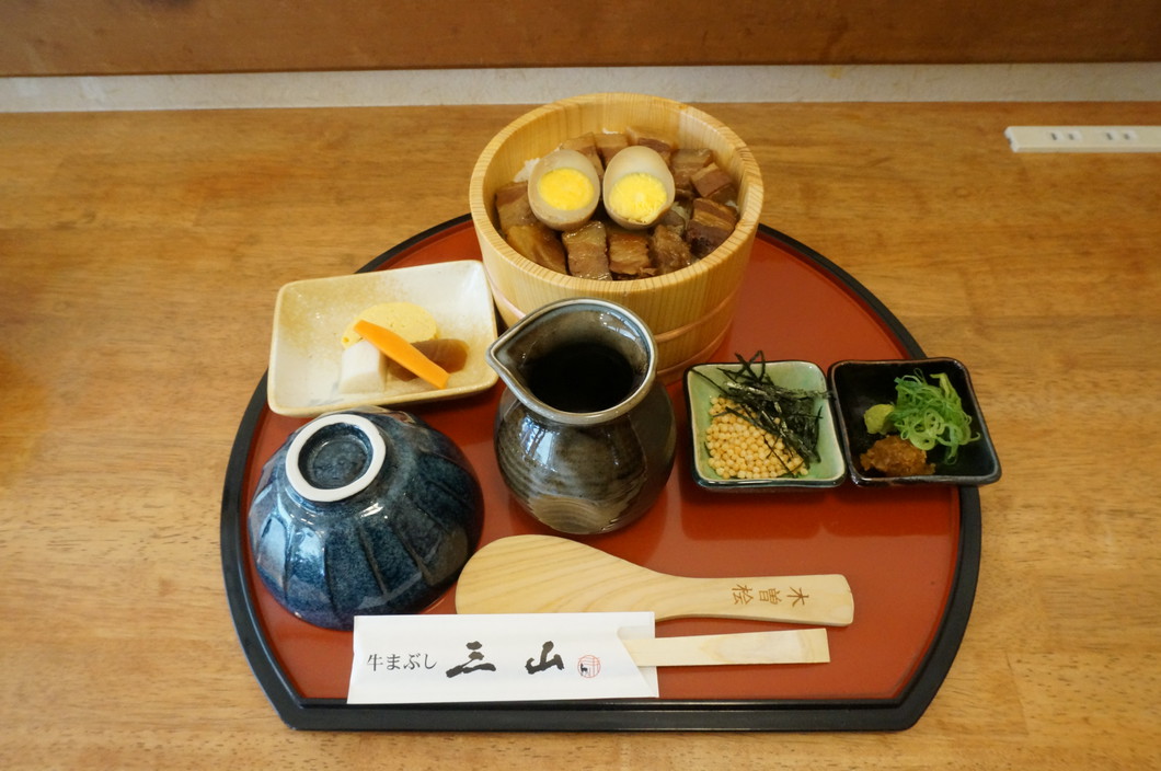 牛まぶし三山は、香ばしく焼き上げた牛肉をたっぷりのせた名物「牛まぶし」を楽しめるお店です。