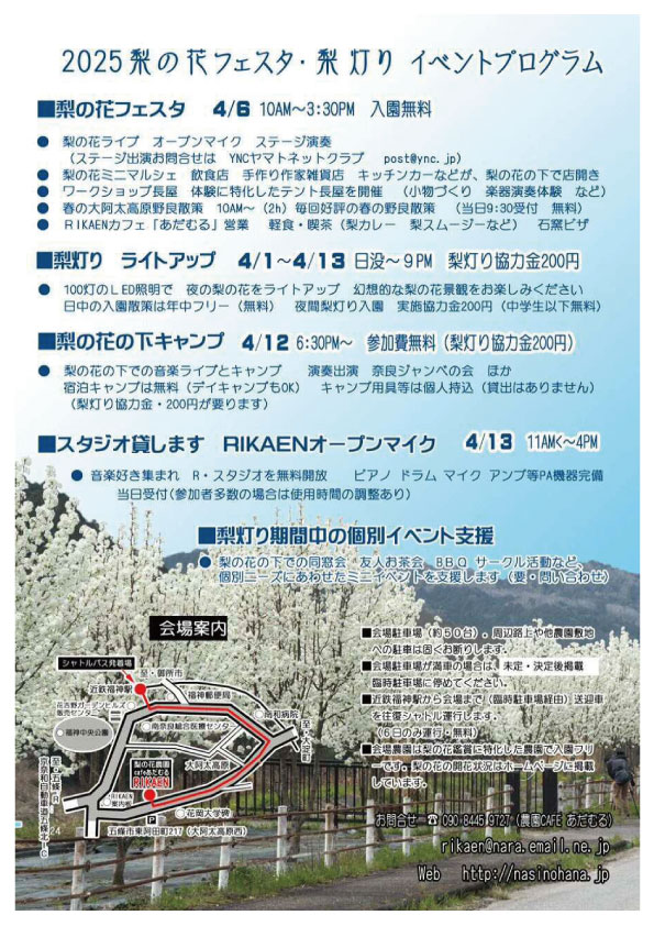 | 開催場所 | 大淀町大阿太高原 梨の花農園RIKAEN |